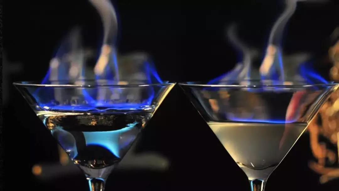把酒倒入透明玻璃杯中,點(diǎn)燃。等火焰自然熄滅,酒體冷卻后觀察酒體變化。